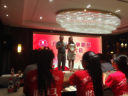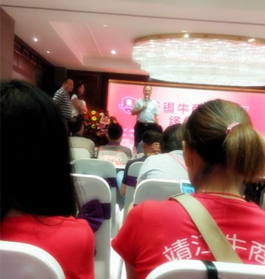 這次的會議主持仍是靖江牛商會胡會長和袁小瓊這對黃金搭檔來共同主持。會議開始后,首先由無錫牛商會長王秋芬女士上臺致辭,王會長問大家知道無錫牛商會的的宗旨是什么?繆旭君總司令回答道:“無 錫牛商強力生長,無錫無錫創(chuàng)造奇跡!” 這次牛商爭霸賽中,無錫牛商可謂是表現(xiàn)出眾,超額完成任務(wù) !3個月牛商爭霸賽原定目標(biāo)1.2億,實際完成達1.3億!