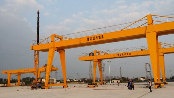 靖江市起重設(shè)備廠設(shè)計的這臺軌道式集裝箱龍門吊與傳統(tǒng)的輪胎式集裝箱龍門吊相比,運行速度快、自重輕,節(jié)省投資,堆箱定位精準(zhǔn),是集裝箱裝運的最好選擇。