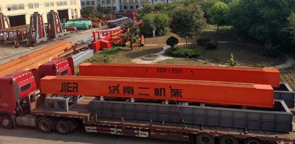 經(jīng)過一個(gè)多月的生產(chǎn),公司生產(chǎn)的2臺(tái)250+250噸液壓龍門吊生產(chǎn)安裝調(diào)試完成,準(zhǔn)備發(fā)往客戶現(xiàn)場。
