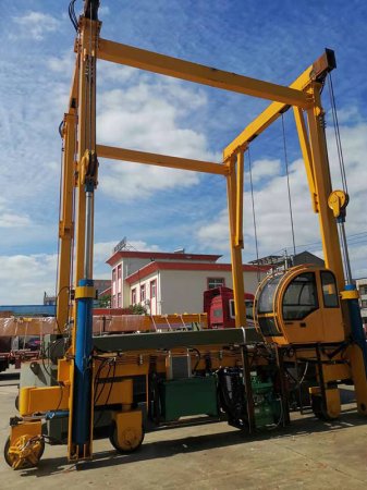目前,輪胎式集裝箱龍門吊起重量大多是按標(biāo)準(zhǔn)箱20尺和40尺設(shè)定的,跨距為6列集裝箱和一條底盤車道的寬度,起升高度一般為堆4過5,大概11-12米。輪胎式集裝箱龍門吊可以有效利用堆場,堆場建設(shè)費(fèi)用相對(duì)較低,機(jī)動(dòng)靈活,通用型強(qiáng),它不僅能前進(jìn)、后退,而且還有轉(zhuǎn)向裝置,通過車輪旋轉(zhuǎn),能從一個(gè)箱區(qū)轉(zhuǎn)移到另一個(gè)箱區(qū)進(jìn)行作業(yè)。
