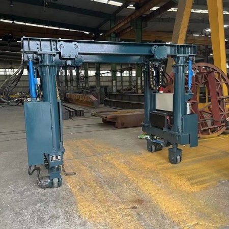 移動(dòng)龍門吊是一種可以在工廠、倉庫和建筑工地等場所使用的機(jī)械設(shè)備。它由兩個(gè)立柱和一個(gè)橫梁組成,形狀類似于傳統(tǒng)的龍門,可以在立柱上移動(dòng)。橫梁上裝有電動(dòng)葫蘆,可以通過控制器來提升和移動(dòng)重物。移動(dòng)龍門吊通常由鋼材制成,具有穩(wěn)定的結(jié)構(gòu)和足夠的承重能力。