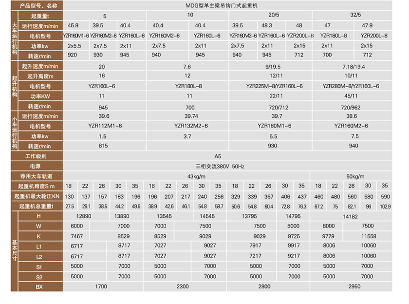 MDG型單主梁吊鉤門式起重機(jī)選用注意事項(xiàng):