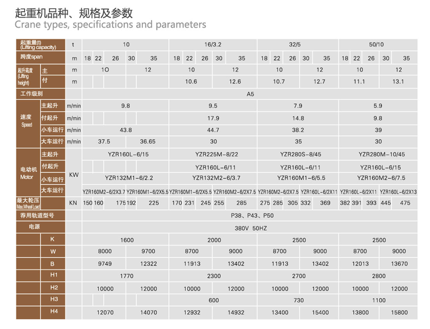 本起重機由橋梁、大車運行機構(gòu)、小車、電氣設備組成。橋架采用箱形焊接結(jié)構(gòu),大車運行機構(gòu)采用分別驅(qū)動。起重機操縱有地面操作、遙控操作及駕駛室操作,訂貨時任選。起重機導電形式分為電纜和滑觸線兩種,訂貨時任選一種。選用本起重機時須填寫訂貨規(guī)范表,須注明使用時工作環(huán)境的低溫度和高溫度以及電源等。