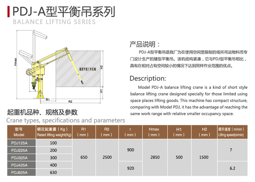 PDJ-A型平衡吊是我廠為在使用空間受限制的場所吊運物料而專門設計生產(chǎn)的矮型平衡吊。該機結(jié)構緊湊,它與PDJ型平衡吊相比,具有在相對占有空間較小的情況下達到同樣作業(yè)范圍的優(yōu)點。